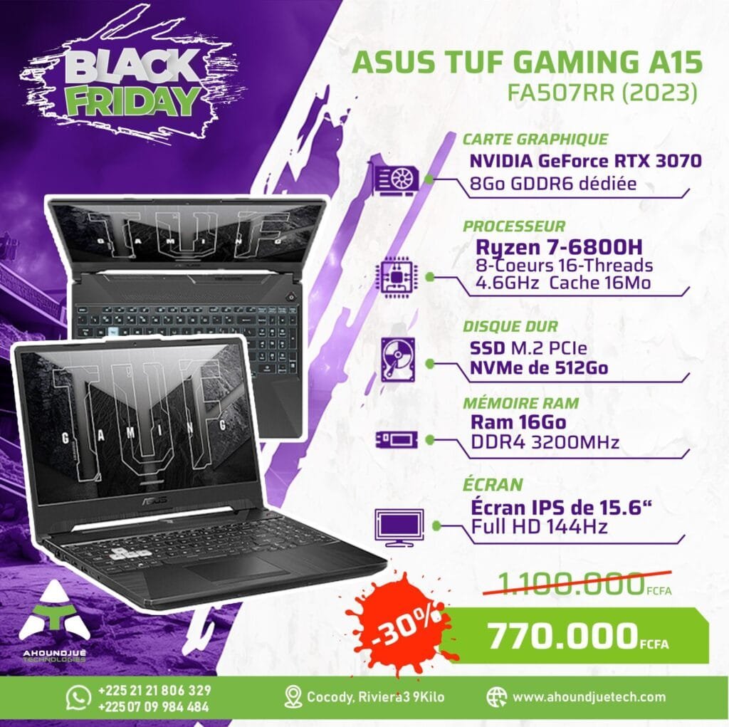 ASUS Tuf Gaming A15 Ryzen 7 6800h 16Go 512Go RTX 3070 8Go