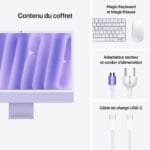 Le nouvel iMac mauve ne se contente pas d’être rapidement performant ; il est également parfaitement équipé pour répondre à tous vos besoins de connectivité. Grâce à deux ports Thunderbolt/USB 4, la transférabilité de vos données est simple et rapide. De plus, la mémoire unifiée de 16 Go et le SSD de 256 Go garantissent un chargement instantané de vos applications et documents, rendant votre expérience utilisateur fluide et efficace. L’ensemble est complété par le Magic Mouse et le Magic Keyboard en format français, qui ajoutent une touche supplémentaire de praticité et d’élégance à votre espace de travail.