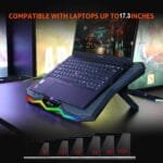 Refroidissement rapide, Dissipation rapide de la chaleur, faible bruit, peut réduire efficacement la chaleur de l’ordinateur portable, de sorte que l’ordinateur soit utilisé plus facilement, dites adieu au jeu en raison de la chaleur générée par le décalage, de sorte que le processus de jeu soit plus fluide.Rétroéclairage RVB qui correspond parfaitement à votre ordinateur portable, mettant en valeur l’ambiance et vous plongeant dans un monde coloré qui offre une expérience immersive.